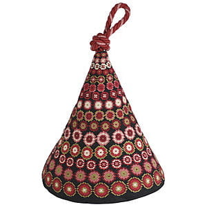 A brand new style of needlepoint doorstop in fabulous rich reds set off by sharp olive green and based on the beautiful heavy glass paperweights known as Millefiori. Enormous fun to stitch. Don’t worry if your flowers go wonky, they do that in the real thing where they are crammed in hugger mugger. When made up (full instructions included in the kit) fill your doorstop with 2 kilos of rice or fine gravel for weight.