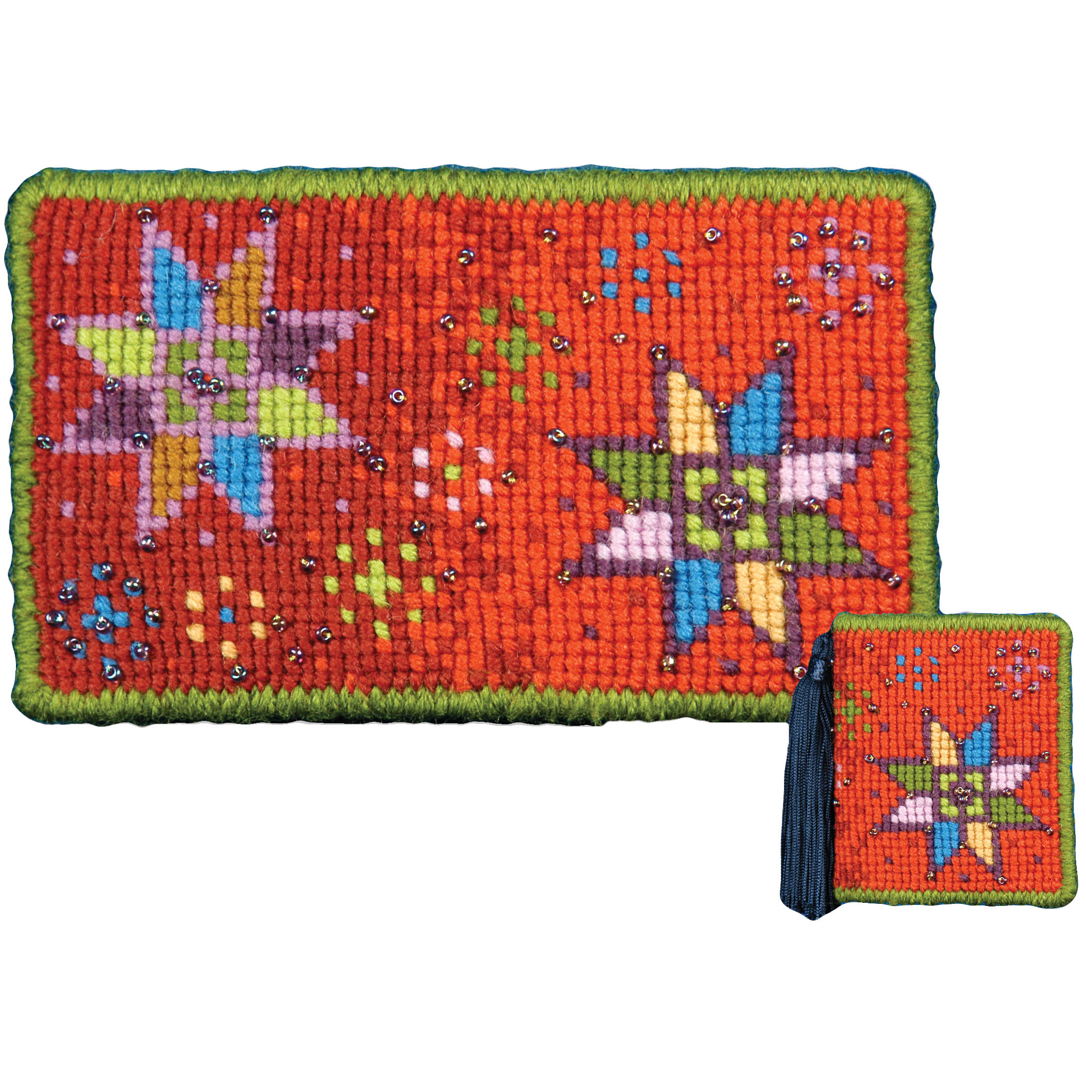Two stars on beautifully varied background. When completed you can make this Animal Fayre needlepoint into a needlecase or a small phone or glasses case.