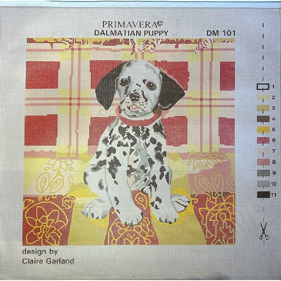 A puppy ready to play. A 12hpi canvas, the finished needlepoint will measure 15″x15″ (39cmx39cm).