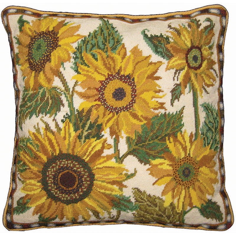 One of a series of sunflower designs from Primavera. This needlepoint is worked in half cross stitch on 12hpi canvas, the finished piece will measure 16″x16″ (41cmx41cm).