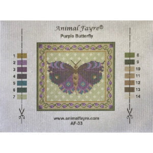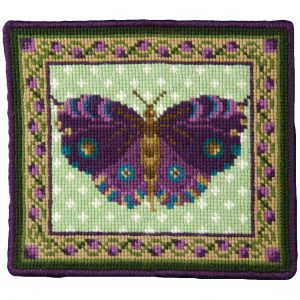 One of a collection of butterfly designs Animal Fayre. Worked in Victorian cross-stitch on 10hpi canvas, the finished piece will measure 8″x7″, 20.3×17.8cm.
