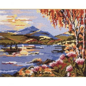 One of a set of five regional needlepoint designs by Primavera. There are two of Scotland, including this one. Worked in half cross stitch on 12hpi canvas, the finished piece will measure 13″x10″, 33x25cm.