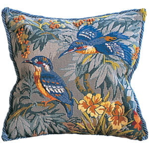 This richly coloured design is worked on 12hpi, the finished piece will measure 16″x16″, 41x41cm. The sample is mainly worked in tent stitch with a selection of other stitches to give the finished piece a more textured feel. Instructions are given for all the stitches, but the cushion can be stitched completely in tent stitch if you prefer.